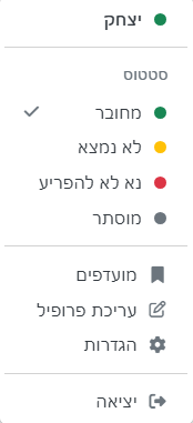 מחובר – מצב מחובר, למשתמשים יוצג שאתם מחוברים (בזמן שאתם אכן מחוברים לפורום) - עיגול ירוק קטן יופיע מעל סמל המשתמש שלכם.