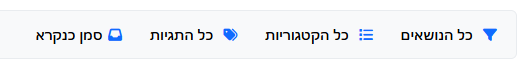 נפרט מעט על אפשרויות הסינון השונות ברשימת הנושאים שלא נקראו. יש בצד ימין ארבעה אפשרויות בחירה, ‘כל הנושאים’, ‘כל הקטגוריות’, כל התגיות’ ו’סמן כנקרא’. נתחיל מהאחרונה שבהם: