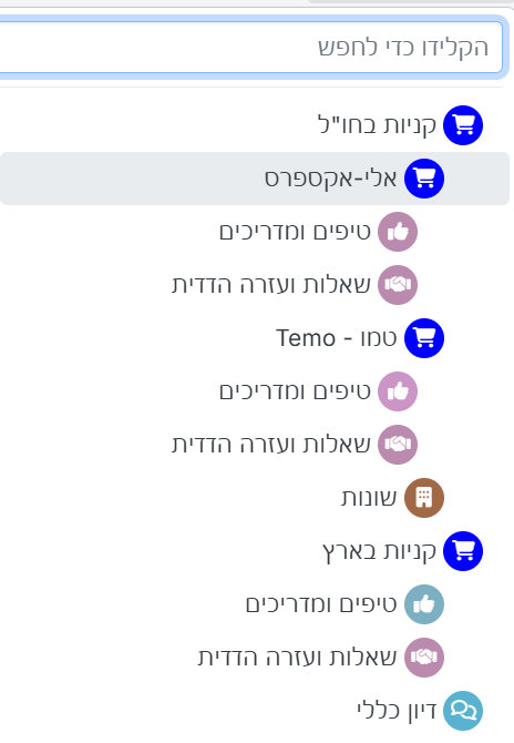 הלחצן עצמו נהפך לתיבת טקסט, תוכלו גם לרשום בה את הנושא המבוקש, והוא יעלה לכם ברשימה הנפתחת.