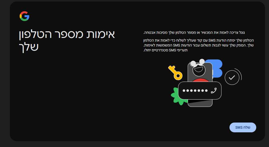 כידוע, גוגל דורשת לעיתים קרובות שני שלבי אימות: סריקת קוד QR ואימות באמצעות SMS.
